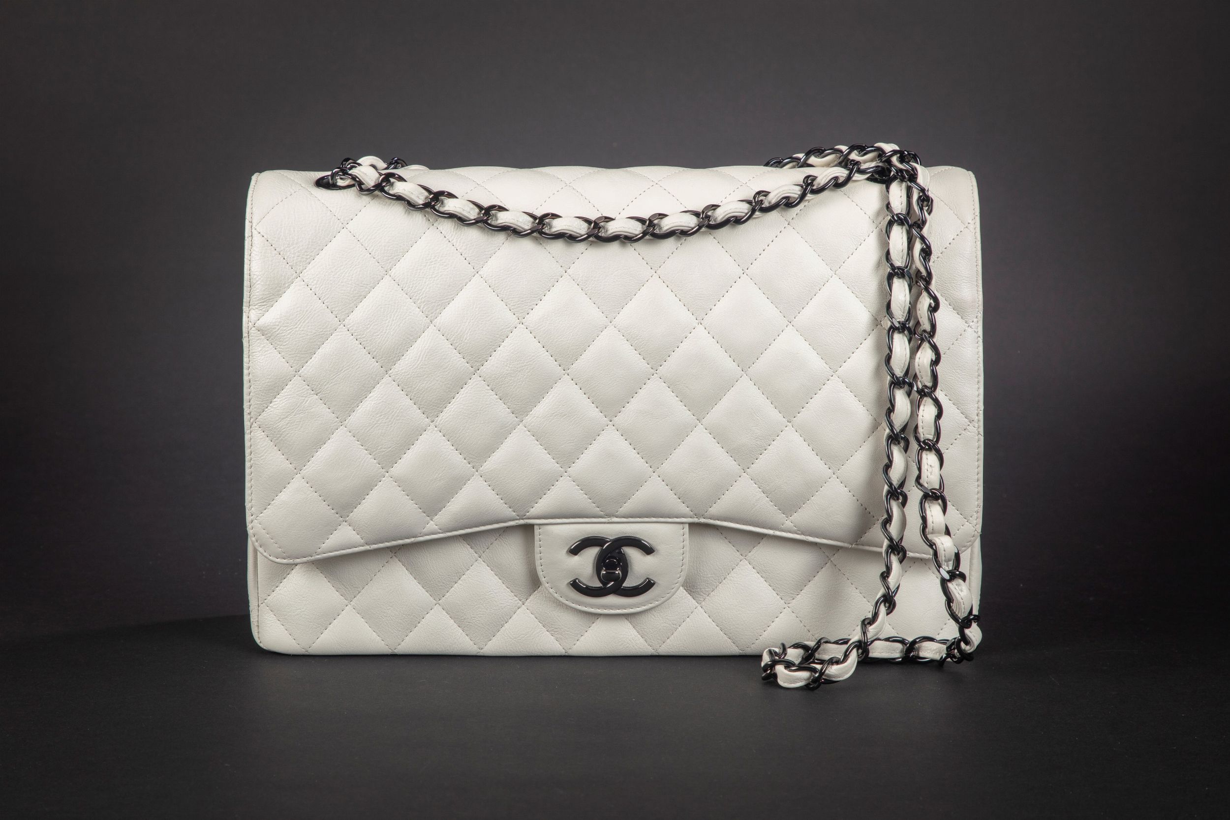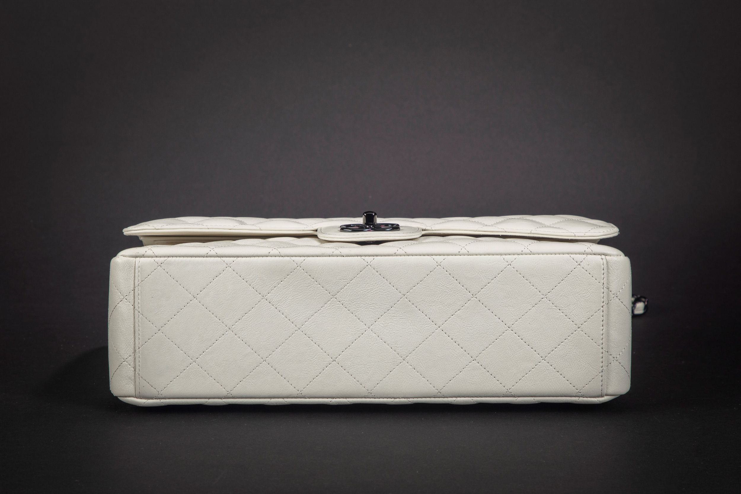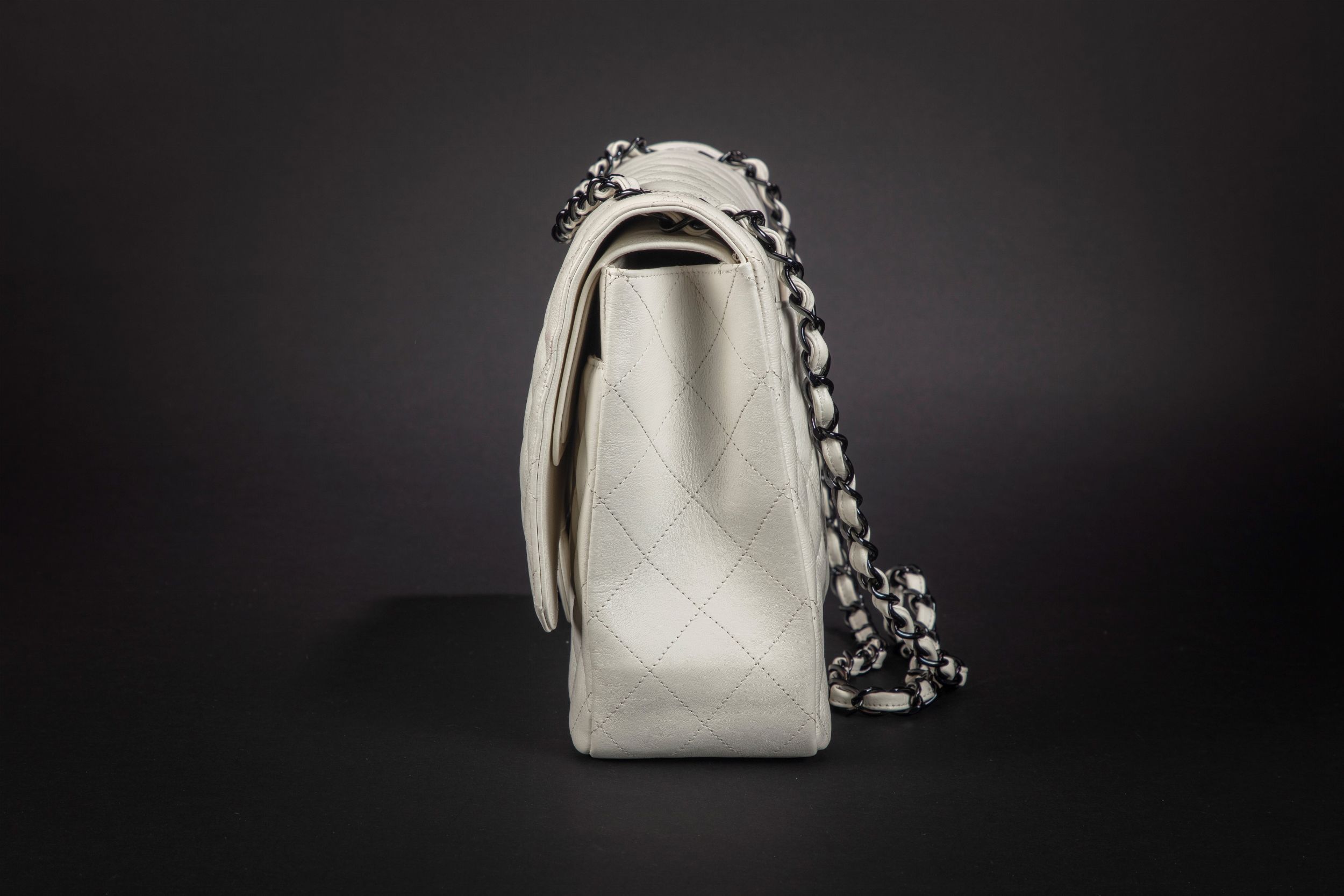 2017 in pelle matelassè caviar color bianco, tracolla a catena in metallo brunito, cm 33, con sacchetto (lievissimi difetti)