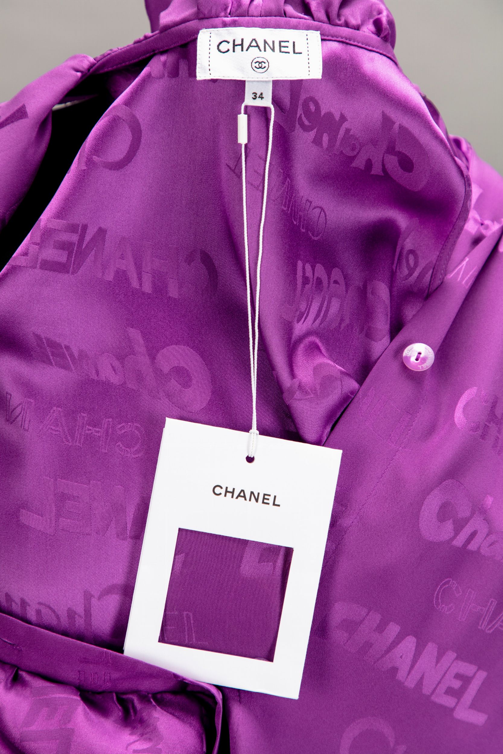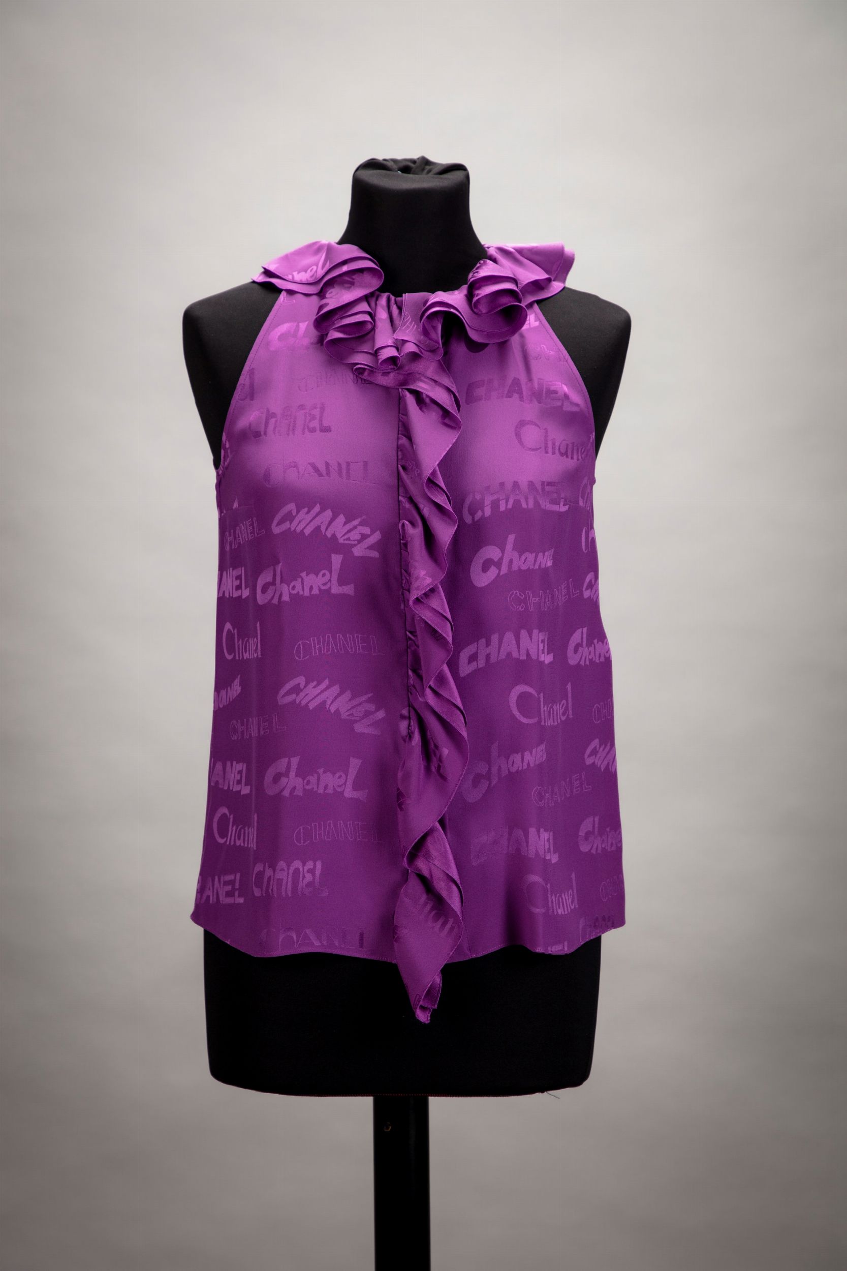 smanicato in seta color viola, bottoni in madreperla logati, profili con ruches, taglia 34 francese (nuovo e mai usato)