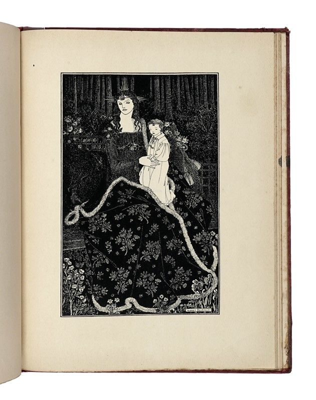 In-4° (mm 285x220). Con 1 ritratto dell'Autore in antiporta fuori testo, protetto da velina, e 50 tavole in bianco e nero di Aubrey Beardsley nel testo, ciascuna preceduta da foglio didascalico. Ampie fioriture alle prime carte di testo, alla velina del ritratto e alla tavola The achieving of the Sangreal, allentata, per il resto buona copia. Legatura editoriale in piena tela, con titoli e illustrazione dell'Autore in oro entro cornice di filetti al piatto anteriore e titoli dorati al dorso; taglio superiore in oro. Ampie gore e macchie ai piatti; fioriture alle sguardie. Annotazione manoscritta al foglio di guardia anteriore e bell'ex-libris al contropiatto. Copia non passibile di restituzione.