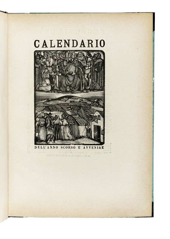 12 numeri in 10 fascicoli in 1 volume in-4° grande (mm 360x255). Dal n. 1 del marzo 1923 al n. 11-12 del gennaio-maggio 1924. Pagine 7; 14, [2] + 1 tavola fuori testo; 7, [1]; 7, [1]; 7, [1]; 7, [1]; 7, [1]; 11, [1]; 8; 9, [1]. Numerose xilografie di Pietro Parigi nel testo. Buona copia con lievissime bruniture marginali. Ciascun fascicolo contiene la brossura originale, con titoli e illustrazioni xilografiche entro doppia cornice concentrica; tutte colorate a mano in differenti colori, tranne quella del primo numero. Legatura in mezza pelle con punte e piatti in carta azzurra; titolo in nero al piatto anteriore. Macchie ai piatti e difetti alle cerniere; conservato il solo piatto anteriore xilografato, probabilmente proveniente dall'originale astuccio floscio.