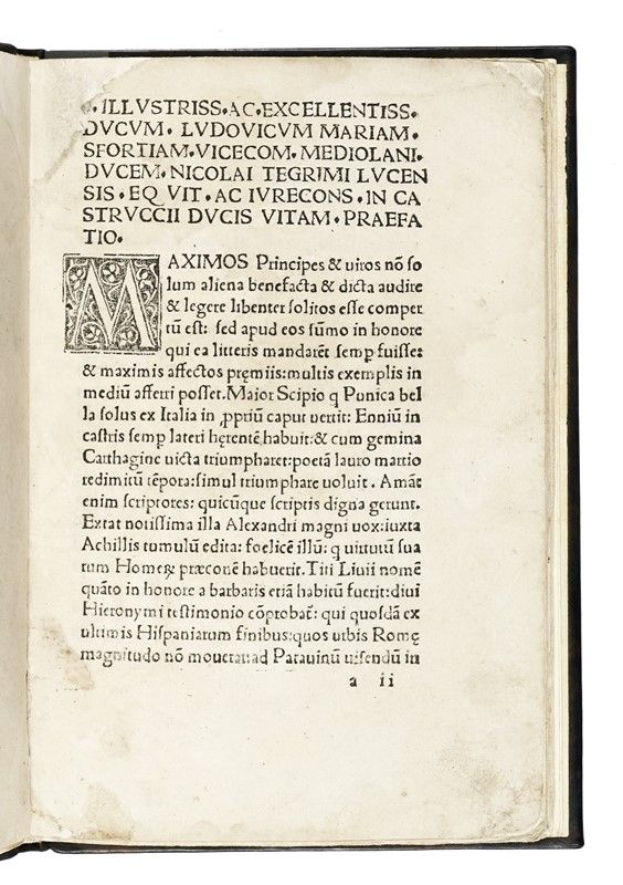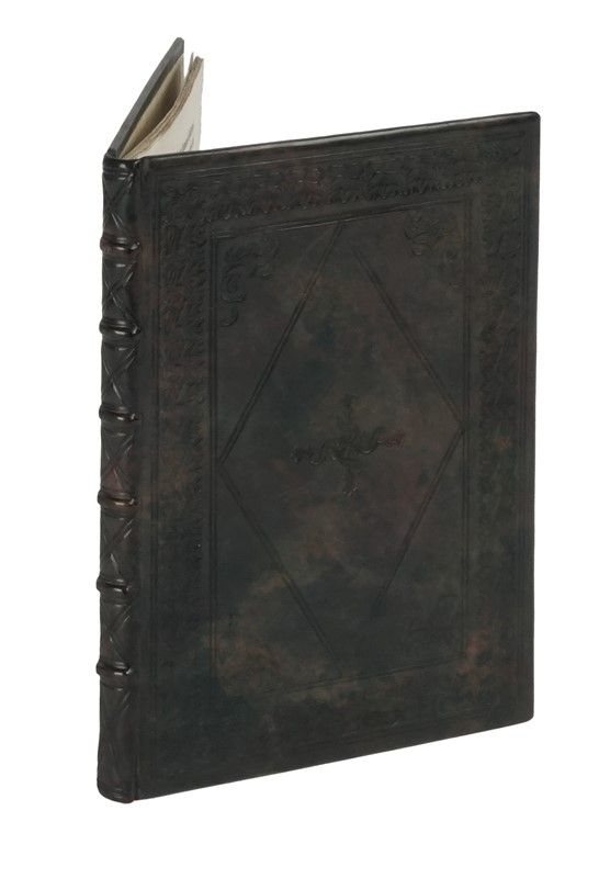 In-4° (mm 205x138). Carte: [41, di 42, assente una carta nel quaderno c]. Testo in romano con due iniziali xilografiche. Mancanza risarcita all’angolo superiore interno (minime perdite di lettere), per il resto buona copia in elegante vitellino moderno in stile, riccamente decorato a secco.