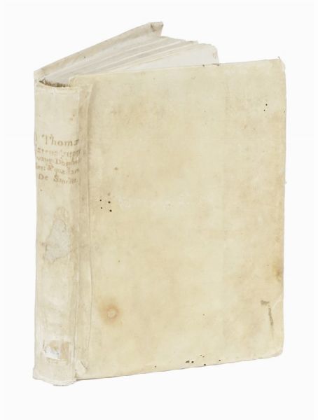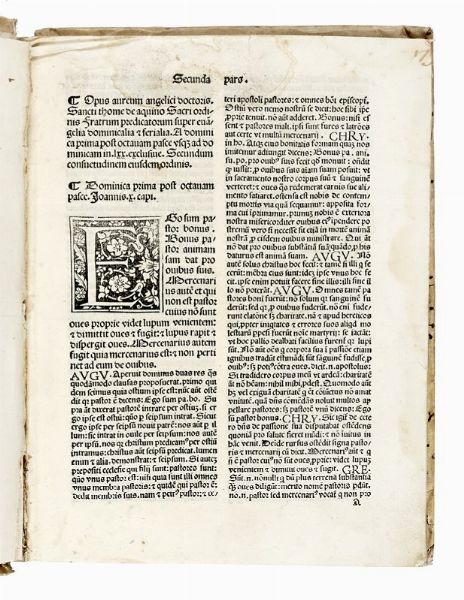 In-4° piccolo (mm 198x147). La sola seconda parte dell'opera, collazionata completa. Testo in gotico su due colonne con iniziali xilografiche. Qualche pallido alone marginale, qualche macchietta, scarabocchi a P8r, un lavorino di tarlo al margine delle ultime carte. In pergamena semi-flessibile settecentesca, dorso staccato, tagli spruzzati d'azzurro.