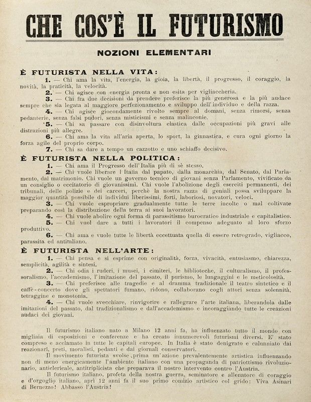 «Chi vuole spiegazioni si rivolga ai Futuristi, sempre felici di discutere e spiegare», Milano: Direzione del Movimento Futurista, s.d. [dicembre 1920].