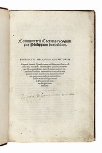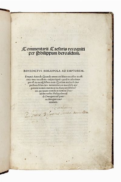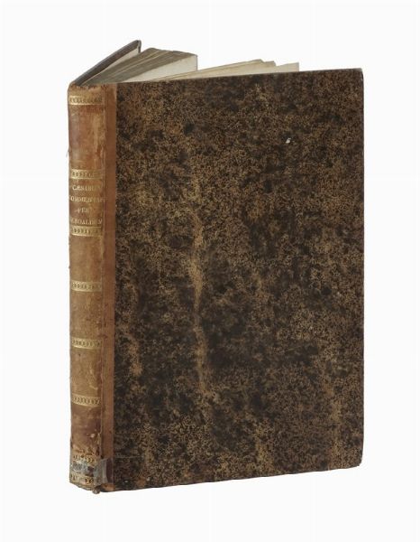 In-folio (mm 305x205). Carte: [133, di 134, assente la prima carta, presumibilmente bianca e assente anche nella copia digitalizzata]. Testo in romano. Tracce d'uso al frontespizio, qualche forellino di tarlo, carte leggermente ingiallite e altre trascurabili tracce del tempo. Mezza pelle posteriore con titoli dorati al dorso, piatti marmorizzati.