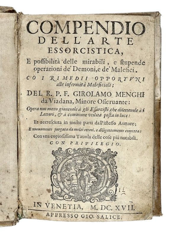 In-8° piccolo (mm 136x87). Pagine: [72], 488. Piccoli lavori di tarlo, soprattutto al margine superiore e inferiore, che toccano talora il testo, e che presentano talvolta restauri, e altre minori tracce del tempo, ma copia genuina e completa nella sua pergamena rigida coeva con tassello al dorso, tagli spruzzati (qualche difetto al dorso).