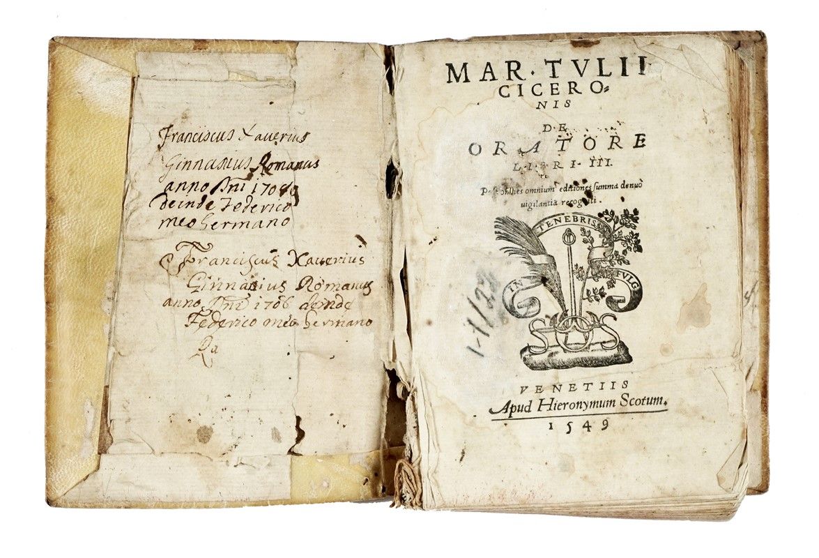 In-8° (mm 143x101). Carte: 103, [1], l'ultima carta con la marca tipografica è incollata al contropiatto posteriore. Frontespizio con marca editoriale, macchiette, gore e fioriture più evidenti nei primi fascicoli, contropiatti con annotazioni di antica mano presenti anche su alcune carte. Pergamena coeva flessibile (piccoli difetti).