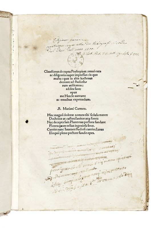 In-4° (mm 286x190). Carte [8], LII, testo in greco e romano. Due note manoscritte al frontespizio, che ha un timbro privato al verso, lavoro di tarlo al margine esterno dei primi due fascicoli, alone all'angolo interno superiore del primo fascicolo, qualche forellino marginale alle ultime carte, restauro al margine esterno di A1 e all'attacco di alcune carte, esemplare corto al margine esterno, ultime due carte con minime perdite, e altre trascurabili tracce del tempo. In antico cartonato d'attesa di riutilizzo, con rinforzi e sguardie rinnovate.