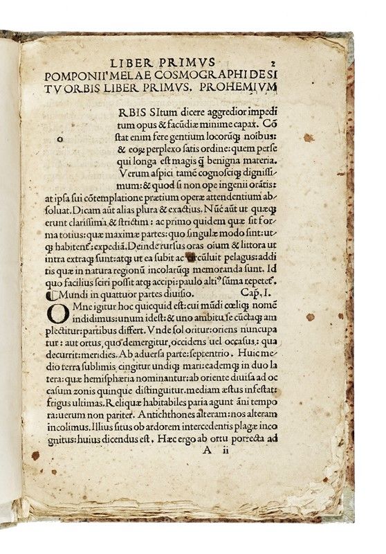 Rarissima terza edizione del compendio geografico di Pomponio Mela, (Al colophon:) Pisauri: per Petrum Capha in domo Hieronymi Soncini, 1510 die IX Februarii.