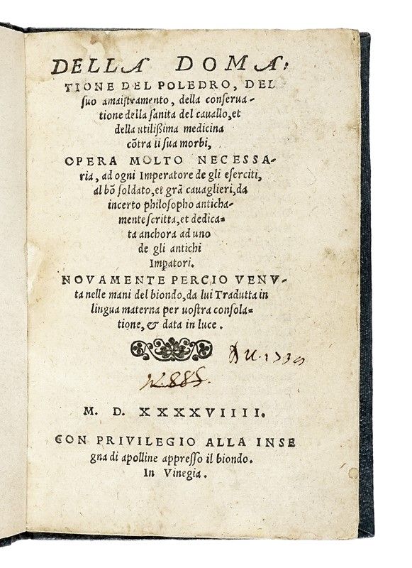 In-8° (mm 144x95). Carte 21, [2]. Marca editoriale in fine. Carte uniformemente ingiallite e con pallide gore. In percallina blu con titoli dorati al dorso.