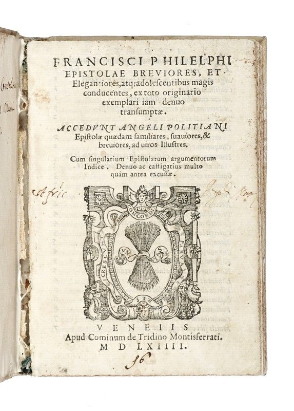 In-8° (mm 144x96). Carte: [8], 104. Frontespizio con elegante xilografia entro cornice editoriale. Le ultime carte leggermente arrossate, qualche piccolo segno del tempo, annotazioni di antica mano alla sguardia anteriore e sul frontespizio. Piena pergamena settecentesca con titoli manoscritti al dorso e tagli spruzzati.