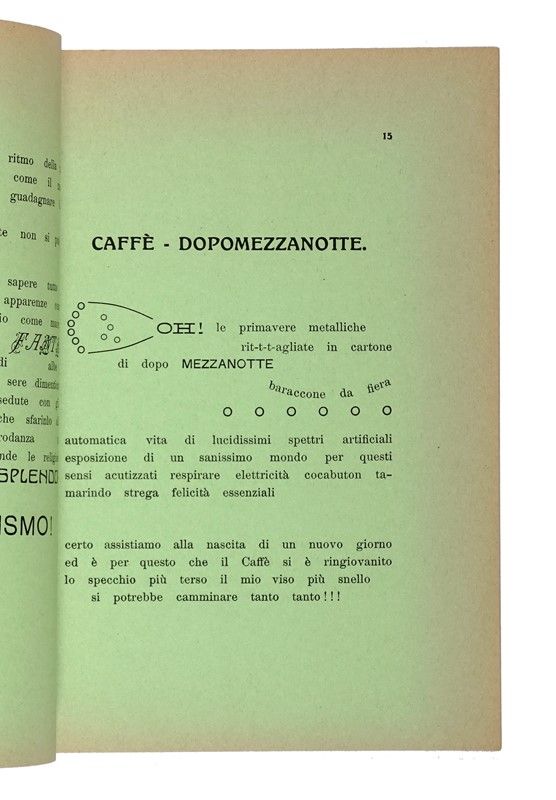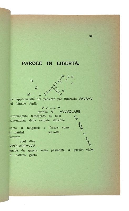 «[...] Parole in libertà sono non giochi associativi e dissociativi da dilettante in poltrona [...] ma un modo nuovo, spontaneo e naturale di accettare la vita, modificarla, viverla», Milano: Edizioni futuriste di Poesia, 1916.
