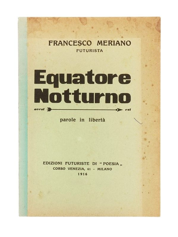 In-8° (mm 240x170). Pagine 51, [1]. Ottima copia marginosa, stampata su carta verde. Brossura editoriale con titolo in nero e grafica dell'Autore al piatto anteriore. Dorso ricostruito, fioriture e arrossature marginali ai piatti.