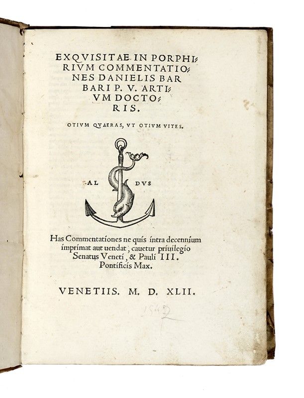 In-4° (mm 205x152). Carte [110]. Marca editoriale xilografica aldina al frontespizio e al colophon. Occasionali annotazioni marginali, da Y1 a 2D6 gora all'attaccatura delle carte e al margine inferiore, qualche altro lieve e trascurabile segno del tempo, esemplare con carte croccanti. Piena pergamena flessibile coeva, con titoli manoscritti al piatto anteriore e al dorso.