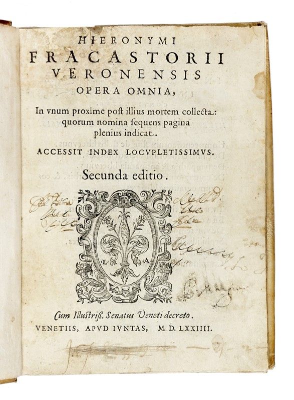 In- 4° (mm 216x155). Carte: [20], 213, [1] con molte illustrazioni dentro il testo. Iniziali xilografiche, frontespizio con vignetta xilografica e qualche annotazione di antica mano. Qualche leggera macchiolina e pallida gora ma in buone condizioni, margine superiore corto in alcuni punti, in particolare alle ultime carte. Piena pergamena rigida settecentesca con tagli spruzzati di rosso e titoli in oro entro tassello in pelle sul dorso.