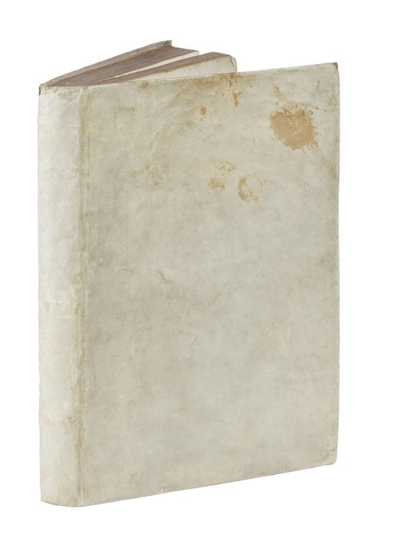 2 parti in 1 volume in-folio (mm 298x204). Carte CXLVI, [54] (ultima bianca). Ampia vignetta xilografica al frontespizio, numerose belle iniziali xilografiche. Frontespizio brunito, con strappi, controfondato e sciolto, fascicoli a-b leggermente ingialliti, per il resto copia fresca in pergamena semi-flessibile posteriore, tagli rossi.