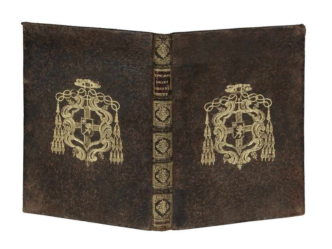 Insieme di due belle legature cardinalizie, entrambe in 4to (288x 208 e 260x185 mm.), la prima, più grande, in pelle marrone chiaro, riccamente decorata in oro ai piatti, con armi al centro entro bordura floreale adorna di numerosi ferri, la seconda in pelle marrone, con grandi armi dorate al centro dei piatti e dorso riccamente decorato in oro (minimi difetti).
