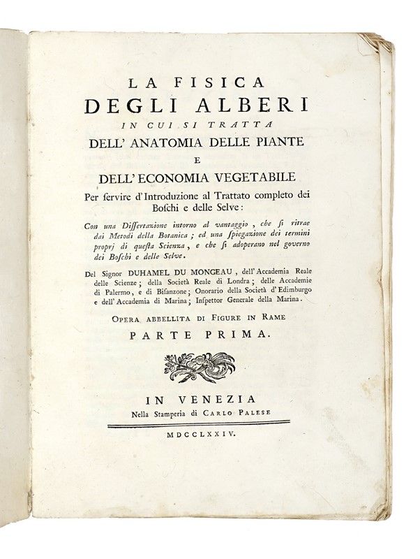 2 volumi in-4° (mm 257x186). Prima parte pagine LXXII, 272 con 28 tavole fuori testo ripiegate in fine; seconda parte pagine [8], 404 con [22] tavole fuori testo ripiegate in fine. Nel primo volume qualche alone al margine superiore, più evidente e che tocca il testo da C7 a D3, piccole mancanze alla piegatura della tavola 1. Nella seconda parte alone all'angolo esterno superiore, che va svanendo, da π1 a C5, tavola 22 con mancanza al margine esterno. Occasionali macchioline sbiadite e trascurabili tracce del tempo. Legature in pieno cartonato flessibile marmorizzato (difetti e mancanze).