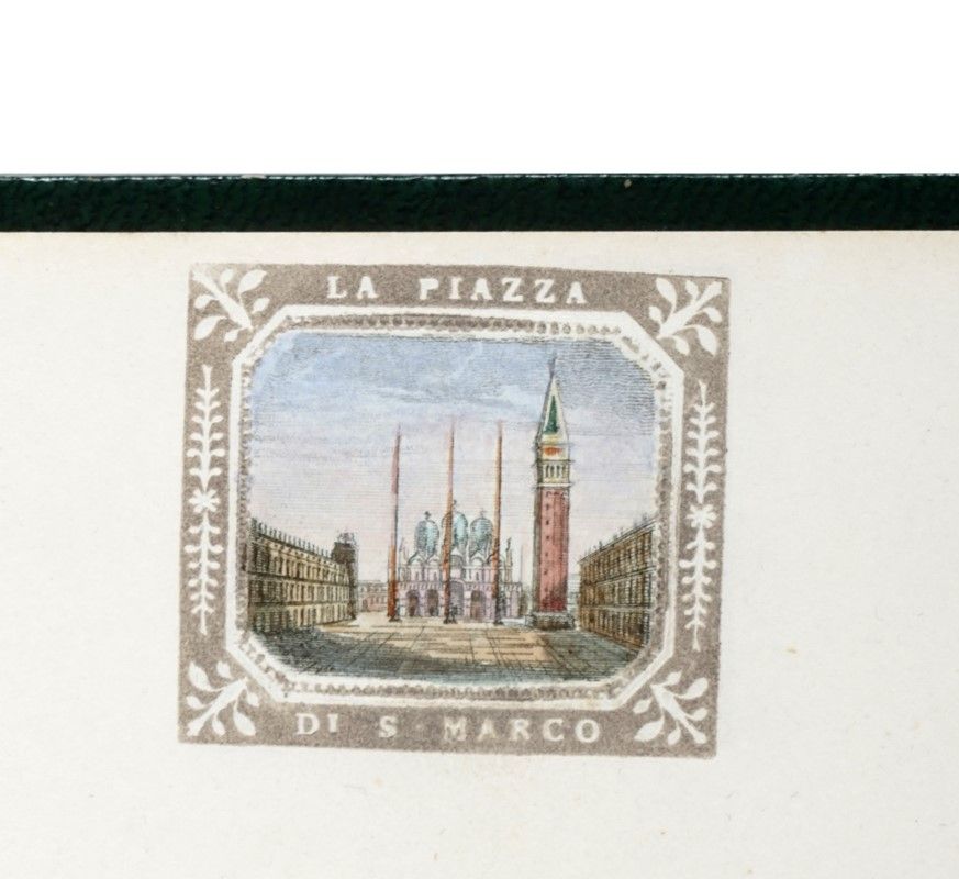 In-8° oblungo (mm 183x230) con frontespizio + [50] carte con piccole vedute di Venezia + [6] carte bianche finali. In mezza pelle coeva con piatti rivestiti in percallina verde (minimi difetti).