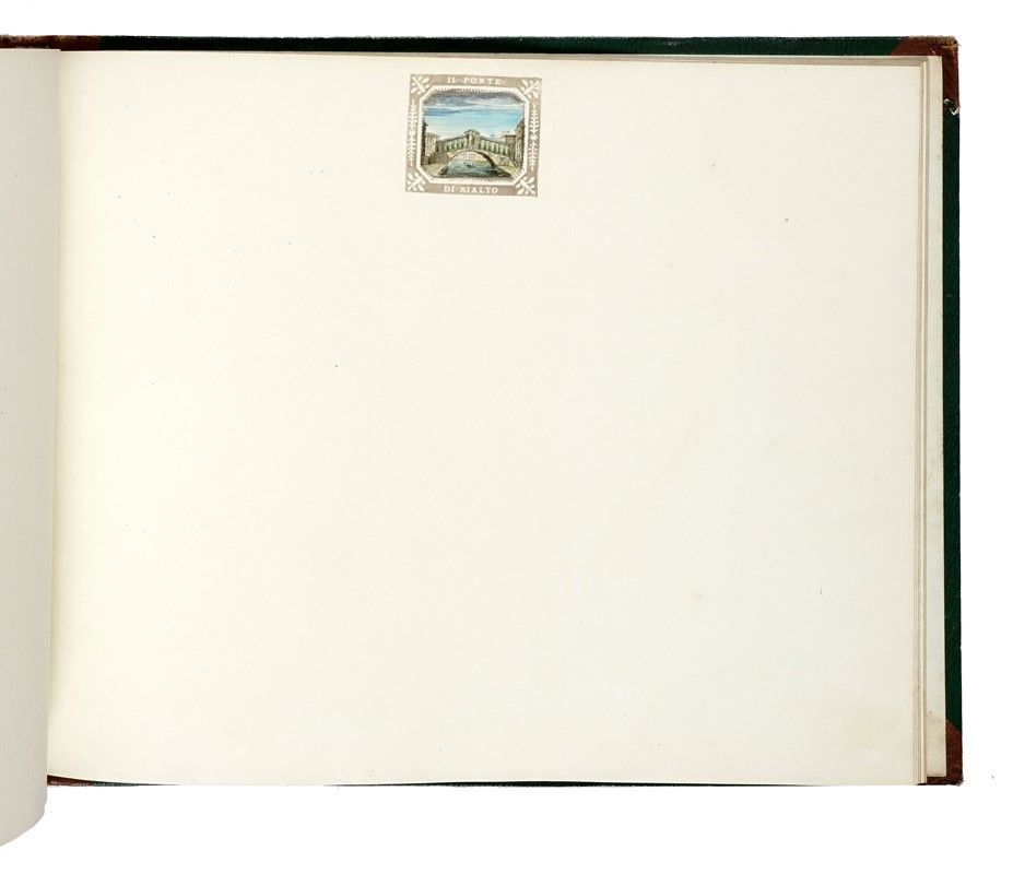 Quaderno a fogli bianchi con vedutine di Venezia, Albrizzi in Venezia, XIX secolo.