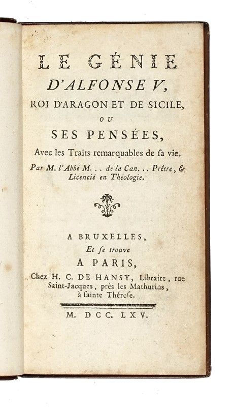 Le genie d'Alfonse V roi d'Aragon et de Sicile, ou Ses pensees...