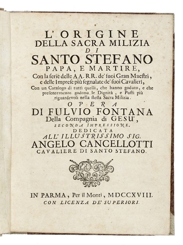 In-4° (mm 210x155). Pagine [8], 112 e con 6 tavole calcografiche fuori testo. Antiporta con impercettibile antico restauro al verso, piccolo restauro al margine inferiore alla carta B8, e altre trascurabili tracce del tempo. Cartonato moderno con piatti marmorizzati e titoli manoscritti in tassello cartaceo al dorso.