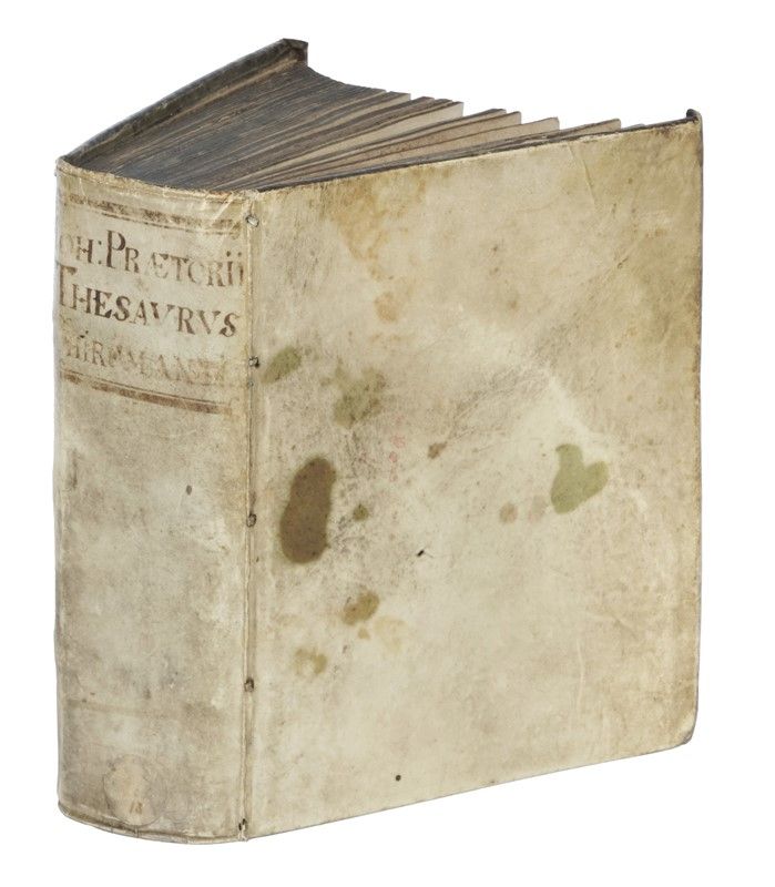 In-4° (mm 189x152). Pagine [12], 36, 856, 14, 857-10026 (i.e. 1026), 301-340, [60] con [1] carta di tavola ripiegata. 2 frontespizi, uno calcografico riccamente decorato e l'altro tipografico con piccolo fregio xilografico. Fregi, finalini e illustrazioni xilografiche nel testo. Piccola mancanza restaurata al frontespizio che non tocca il testo, carte pallidamente ingiallite ed alcune lievemente brunite, margini un po' corti, con un paio di illustrazioni con il margine ripiegato. Piena pergamena rigida coeva con titoli manoscritti al dorso (con qualche macchietta).