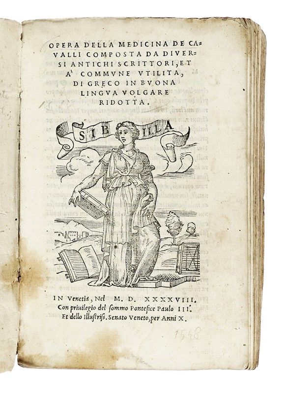 In-8° (mm 150x98). Carte 181, [7]. Grande marca dello stampatore al frontespizio e in fine, testo in corsivo. Esemplare con qualche occasionale e lieve macchietta o fioritura, ma nel complesso buona copia genuina in pergamena flessibile coeva (un po' sciupata).