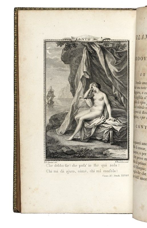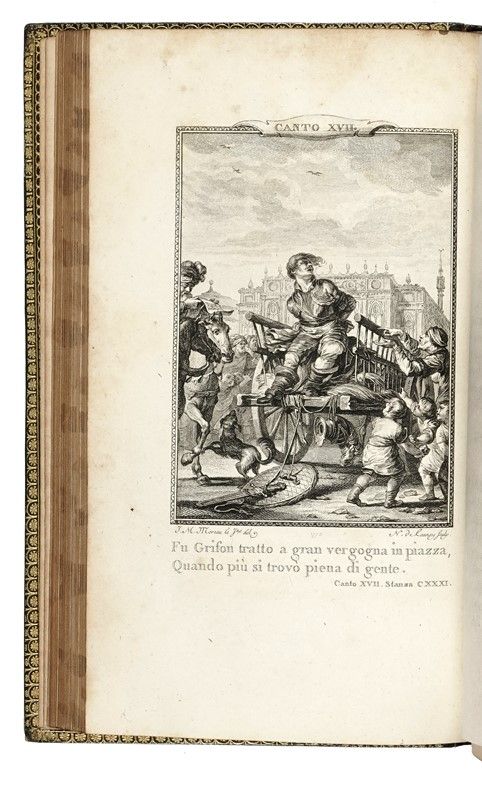 4 volumi in-8° (mm 230x136). Collazionati completi con tutte le tavole. Con 1 ritratto calcografico dell'Autore all'antiporta del I volume e nel complesso 46 tavole fuori testo incise in rame in fresca e nitida tiratura, collazionato completo. Occasionali fioriture sbiadite. Marocchino verde con titoli e fregi dorati al dorso con nervi. Tagli dorati.