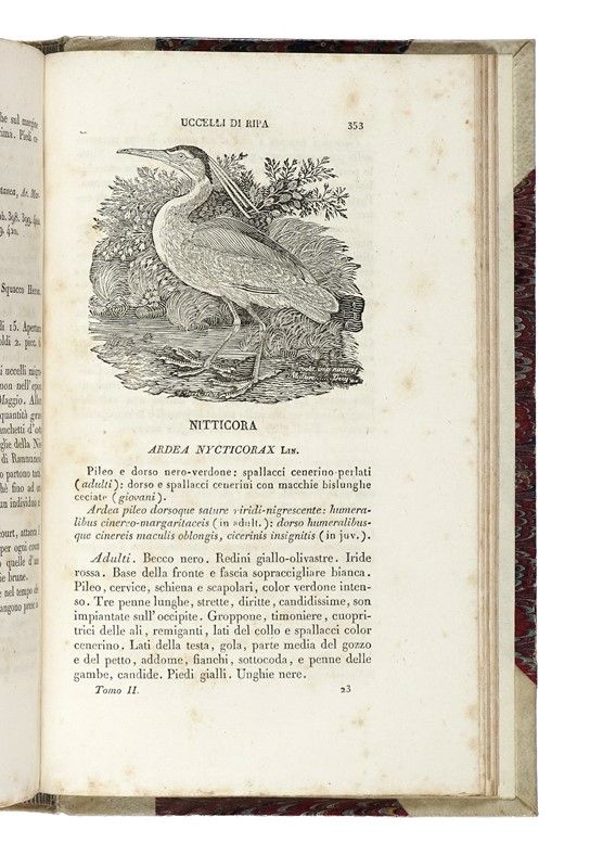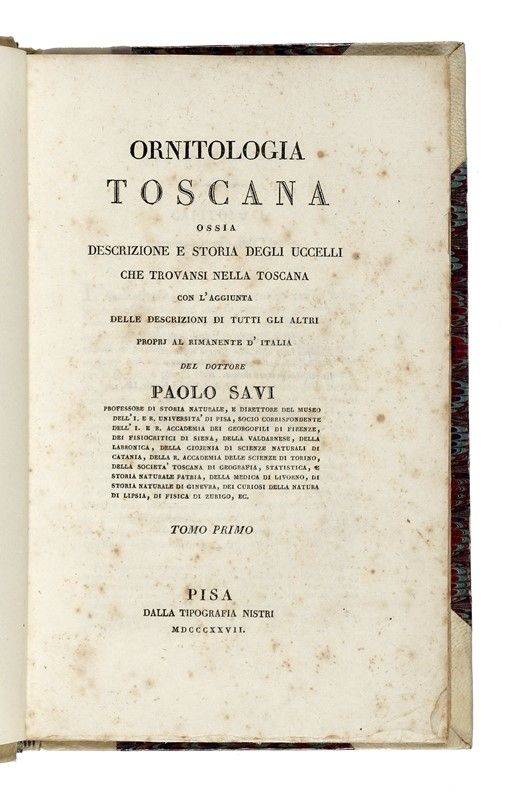 3 volumi In-8° (mm 202x133). Pagine: XLIV, 302; [4], 383, [1]; [6] (di cui 2 per l'avviso dell'editore), 296 e pagine 113, [1], i Quadri sinottici numerati (1-13) sono inseriti dopo pagina 236 prima dell'indice. Testo illustrato con alcune eleganti xilografie, fioriture sparse che non compromettono il buono stato dell'opera. Collazionato completo. Mezza pergamena coeva con titoli dorati entro tasselli in pelle nera e rossa, piatti decorati con motivi marmorizzati.