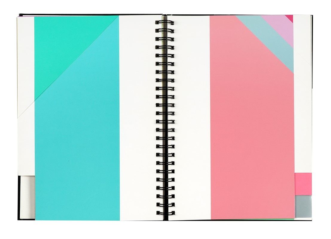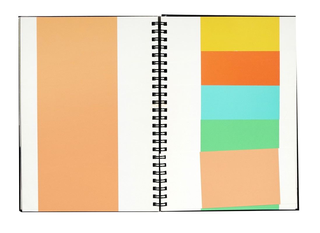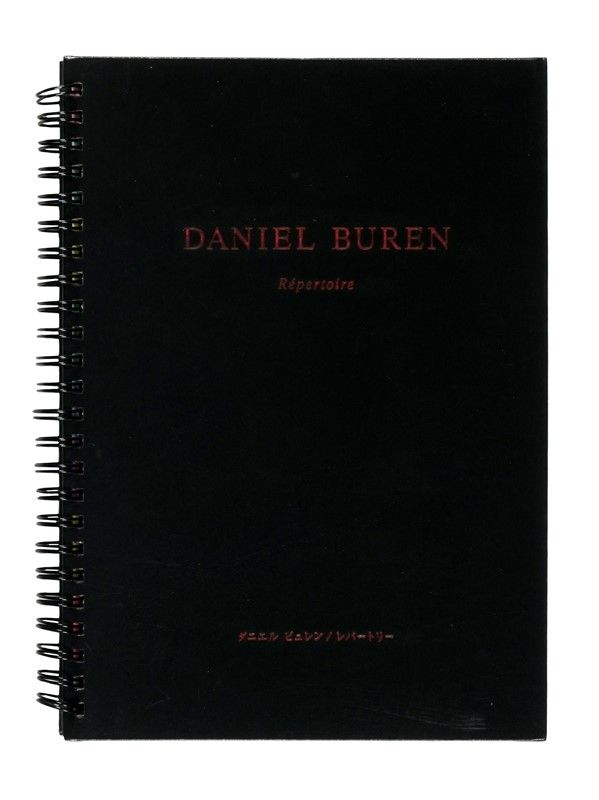 In-8° (mm 210x150). Opera completamente illustrata con numerose tavole monocromatiche con ritagli; alcune pagine sono stampate su pellicola trasparente, altre con le famose strisce a colori di Daniel Buren. Le superfici monocromatiche sono perforate per creare costellazioni di colori e forme sempre nuove. Legatura editoriale in simil pelle, con titoli impressi in rosso al piatto anteriore e dorso a spirale metallica. Con camicia in cartonato muto e custodia editoriale in pieno cartonato nero, con titoli in rosso. Tracce d'uso alla custodia e titoli della legatura leggermente sbiaditi, ma nel complesso ottima conservazione.