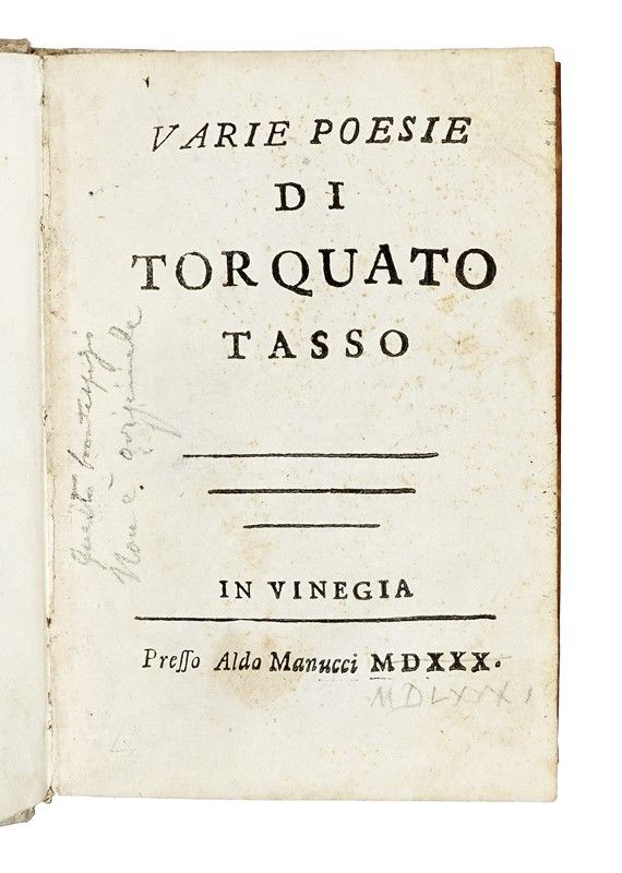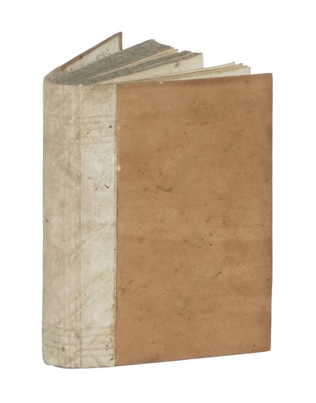 In-8° (138x94) in 6 parti (di 7). Pagine: 160, [8], 74, [4], 9, [3], 22, [2], 27, [3], 4. Assenti le pagine [24] all'inizio, e le pagine [6], 17, [5] in fine. Frontespizio a stampa posticcio realizzato presumibilmente a fine Settecento, testo in corsivo. Margine superiore un po' corto e altre trascurabili tracce del tempo. Ex libris della Biblioteca Cameriniana di Piazzola, notoriamente dispersa. Mezza pergamena settecentesca, tagli spruzzati d'azzurro.