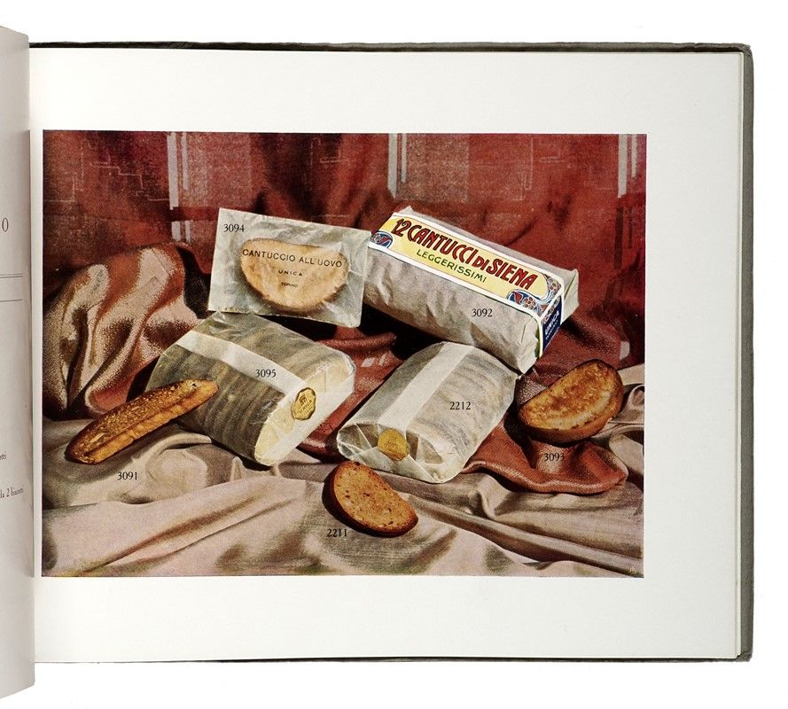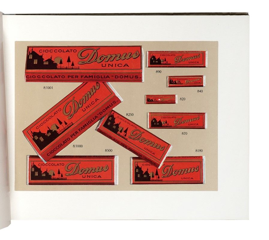 In-4° oblungo (mm 215x280). Esemplare perfettamente conservato, con testo in 4 lingue (italiano, spagnolo, francese e inglese) e moltissime, divertentissime illustrazioni a piena pagina raffiguranti cioccolatini, caramelle, biscotti, confetti, scatole illustrate etc... dell'azienda Unica di Torino. Brossura editoriale con titoli in oro e blu al piatto anteriore. Ottimo stato di conservazione.