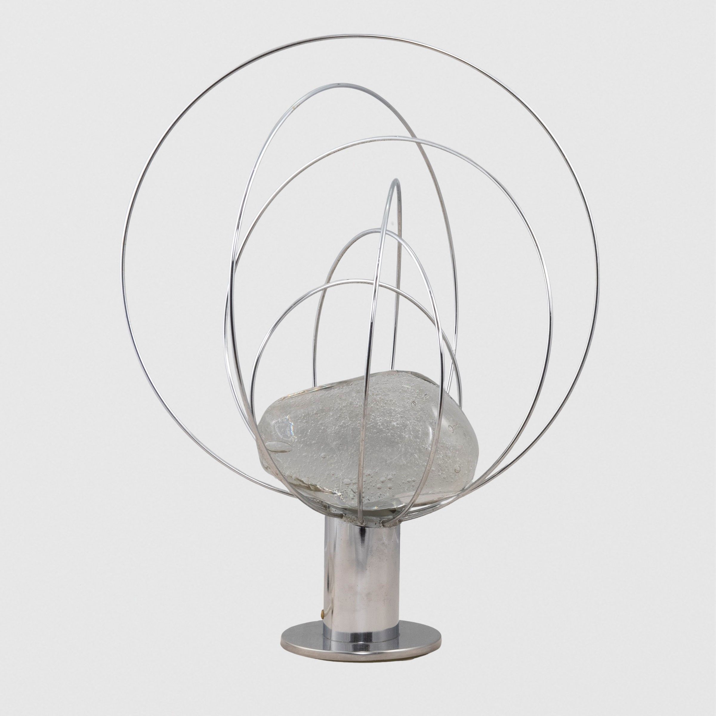 Italia, anni 70 lampada da tavolo mod. Barnaba in metallo cromato e vetro trasparente a bollicine