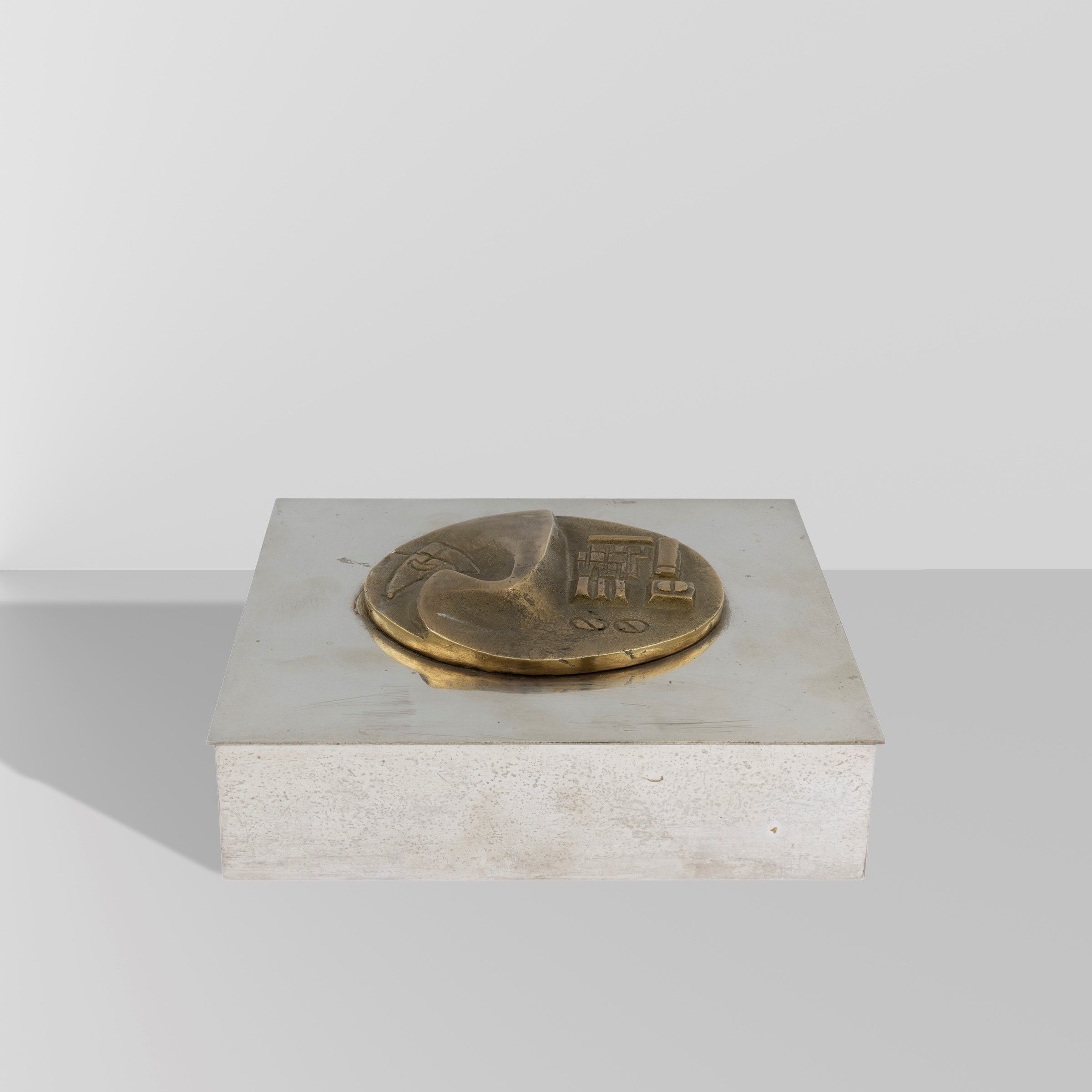 Italia, anni 60 scatola in metallo argentato e bronzo, usure