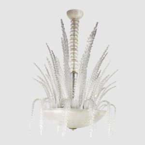95x75 cm. Murano, anni 40 lampada a sospensione in vetro trasparente e vetro satinato