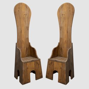 190x55x50 cm. Italia, anni 70 coppia di sedie serie Mobili nella Valle in legno. Bibliografia: L. Ficacci, Mario [..]