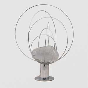 h. 65 cm. Italia, anni 70 lampada da tavolo mod. Barnaba in metallo cromato e vetro trasparente a bollicine