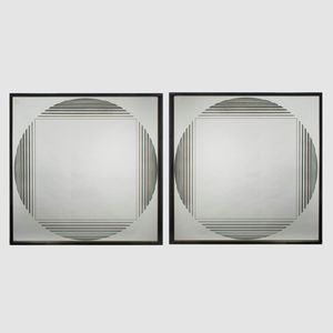 74x74x7 cm. Italia, anni 70 coppia di specchi retroilluminati mod. Brama in vetro specchiato, vetro serigrafato [..]