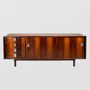 77x200x44,5 cm. Italia, anni 60 sideboard in legno ed acciaio, lievi usure