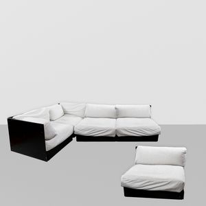 singolo modulo: 66x85x88 cm. Italia, 1971 divano modulare mod. Sofa Bank in legno laccato e tessuto imbottito, [..]