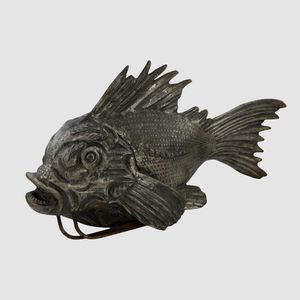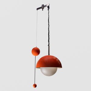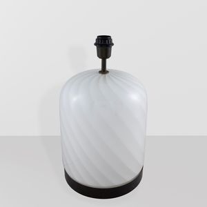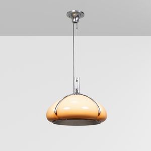 h. 100 cm. Murano, anni 30-40 lampada a sospensione in metallo e vetro soffiato, lievi difetti