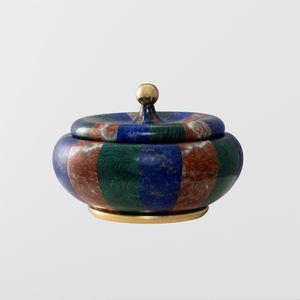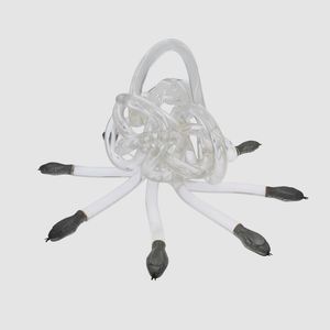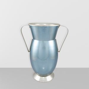 13,5x30x14 cm. Murano, anni 70 vaso mod. Libellula in vetro soffiato colorato, etichetta della produzione
