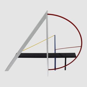h. 188 cm. anni 70 lampada da terra in metallo verniciato, vetro colorato ed ottone, lievi usure
