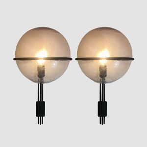 39x35 cm. Murano, anni 50-60 coppia di specchi da parete in vetro ritorto, vetro specchiato ed ottone, lievi u [..]