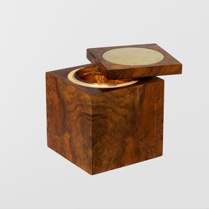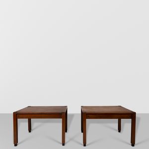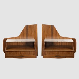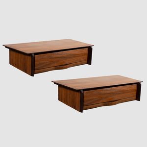 55,5x56x32 cm. anni 50 coppia di comodini in legno, ottone e vetro colorato