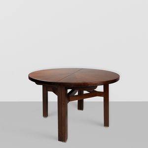 77x98 cm. anni 50 tavolo circolare in legno ed ottone, lievi usure