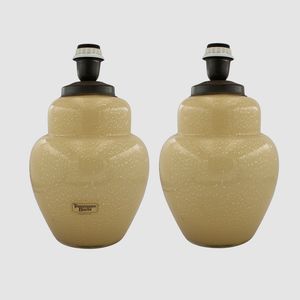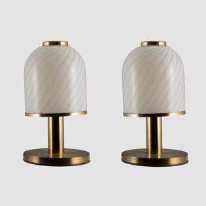 50x43 cm. anni 50 coppia di lampade da tavolo in ottone, metallo verniciato e base in granito, lievi usure