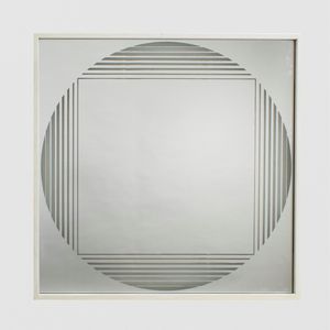 38x31,5 cm. Murano, anni 50-60 specchio da parete in vetro trasparente, vetro specchiato ed ottone, lievi usur [..]