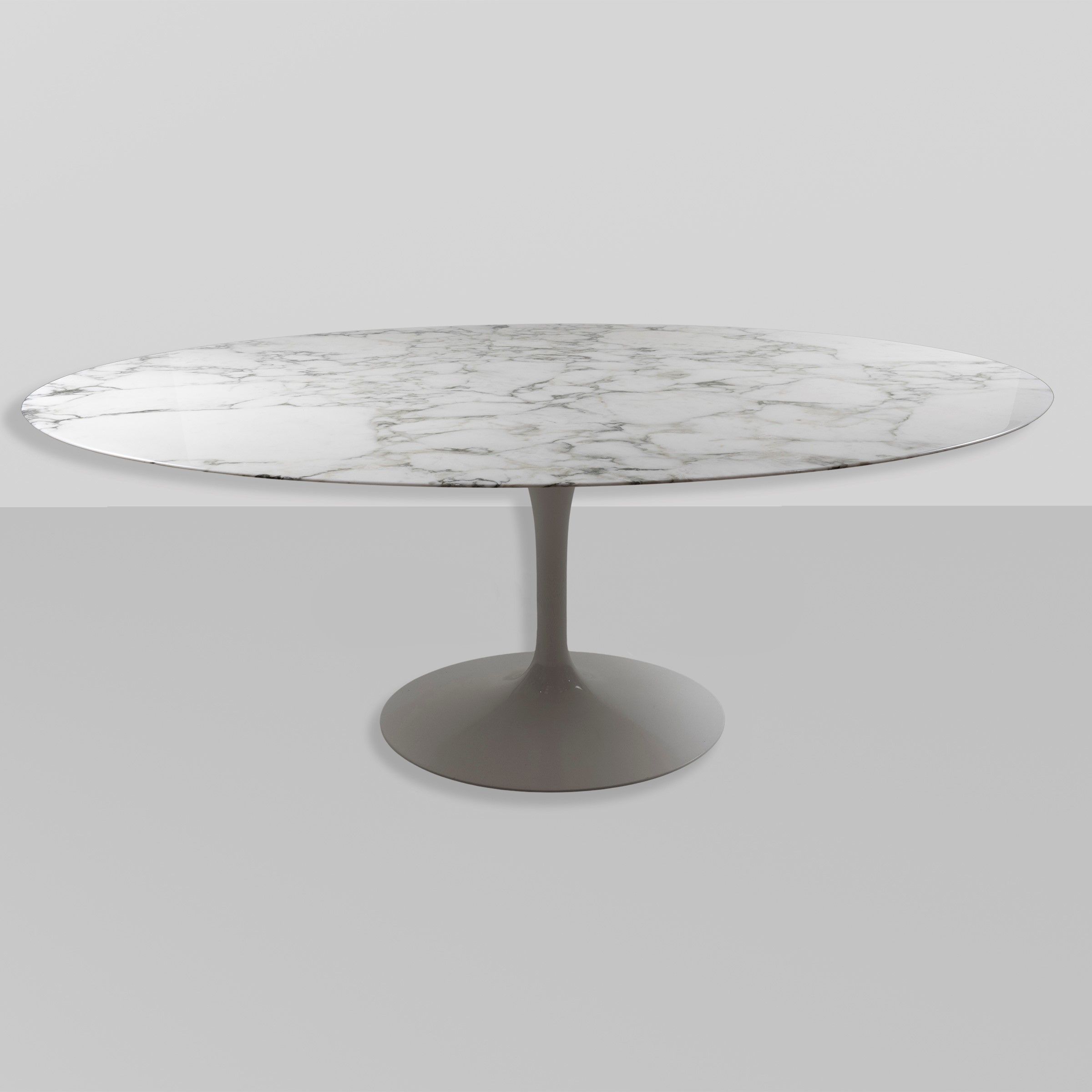 Italia, anni 90 tavolo mod. Tulip in metallo verniciato e marmo di Carrara, marchio ed etichetta della produzione, lievi usure Bibliografia: Catalogo originale Knoll