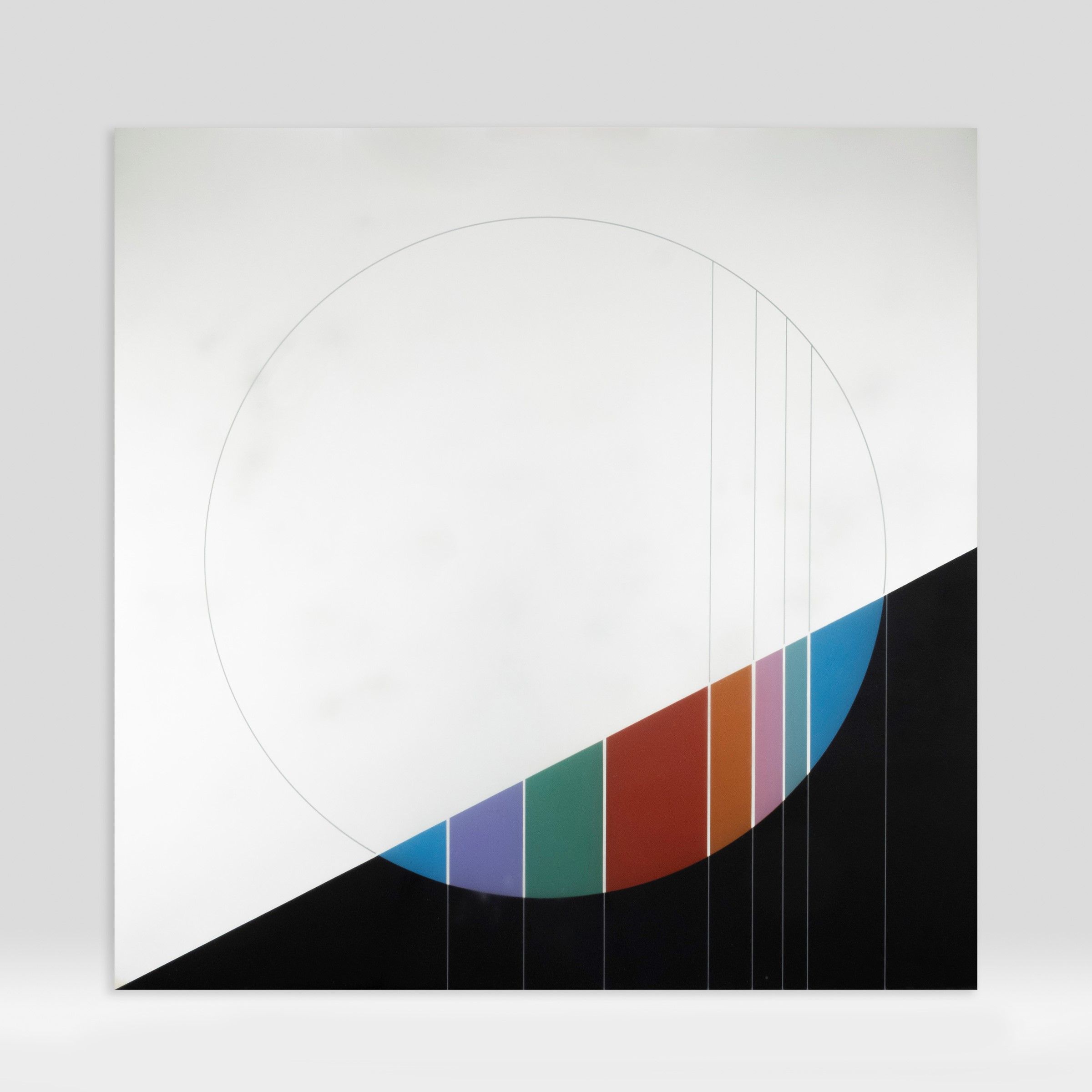 Italia, 1980 circa specchio serie Gli Specchi di Carmi in vetro trasparente e vetro serigrafato in policromia, etichetta della produzione